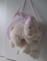 De beer met slabbertje is eenvoudig los te maken en als losse knuffel te gebruiken.