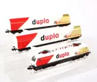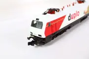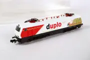 BR 127 001-6 met twee schuifwandwagens met daarop 'Duplo' reclame Locomotief is getest en goed werkend.