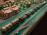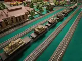 Märklin DRG camouflage militaire trein bestaande uit camouflage V188 met 9 flatbed Märklin 4867 6-assers met Artitec tanks. V188 in originele verpakking 37203 met instructies: ik camoufleerde het met een airbrush en monteerde de ESU LokSound V4-decoder (speciaal geluid) met de lichten in de 2 hutten en het DRG-symbool in foto-geëtst en aangepast metaal op de neuzen
