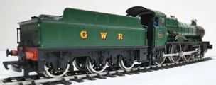 Het model is uitgevoerd in de na-oorlogse groene uitvoering met "GWR" op de tender. De loc is getest en werkend.Hij heeft niet of nauwelijks gelopen - zie ook de conditie van de wielen op de foto - en verkeert in zeer goede staat. De originele verpakking verkeert in goede gebruikte staat (zie foto's).