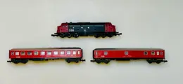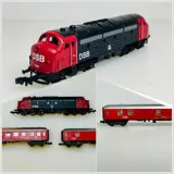 Diesellocomotief van de DSB met twee bijpassende personenwagens. Het kavel is in algehele bijna nieuwstaat.