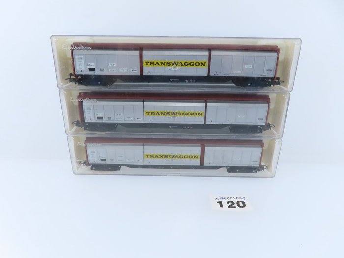Electrotren H0 - 5512 - Goederenwagon - 3x 4-assige schuifwandwagens met opdruk "Transwaggon" - DB