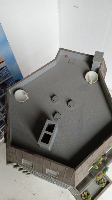 Het origine bouwplan voor de Faller bouwdoos 932 bevindt zich nog in de bouwdoos en wordt met het flatgebouw meegeleverd.