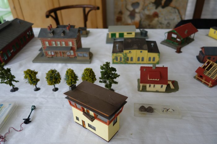 Modelbouw huisjes, stations, Loc-Loodsen, industriegebouwen, landschapsonderdelen, huisjes in aanbouw, los steigermateriaal.