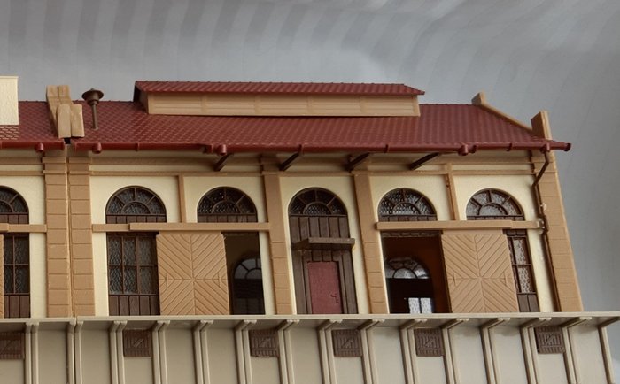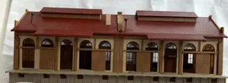 Vollmer 20303 Dubbele goederenloods met schuifdeuren. Gezien de raampartijen past deze loods heel goed bij station Baden Baden van dezelfde fabrikant.