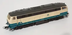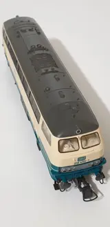 Diesellocomotief BR 218 452-1 van de DB in Créme/oceaanblauwe kleurstelling.