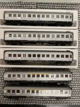 Het betreft 5 Silberlingen rijtuigen van de DB, 4 in originele verpakking, 1 zonder verpakking.