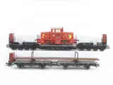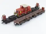 1x 5296 Zware last wagen 12951 acht-assig met remmershuis en kleine diesel loc van het type V42