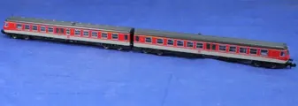 Oranjerode/ lichtgrijze treinstellen met gele 1e klasse sierlijnen