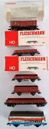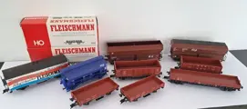 Kavel van 9 Fleischmann H0 en Roco H0 goederenwagons: