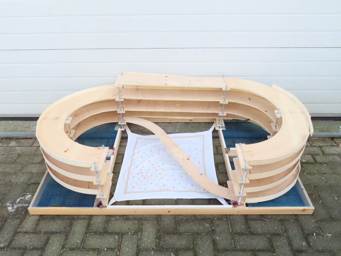 Aan een kant zijn er in het midden segmenten waar je planken uit kan halen.