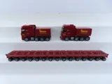 Herpa H0 - Landschap - 3-delige voertuigenset met vrachtauto's en platte wagen voor zeer zwaar vervoer met opdruk "Paule"