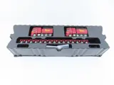 1x 3-delige voertuigenset met vrachtauto's en platte wagen voor zeer zwaar vervoer met opdruk "Paule", rood. Spiegelsets inclusief