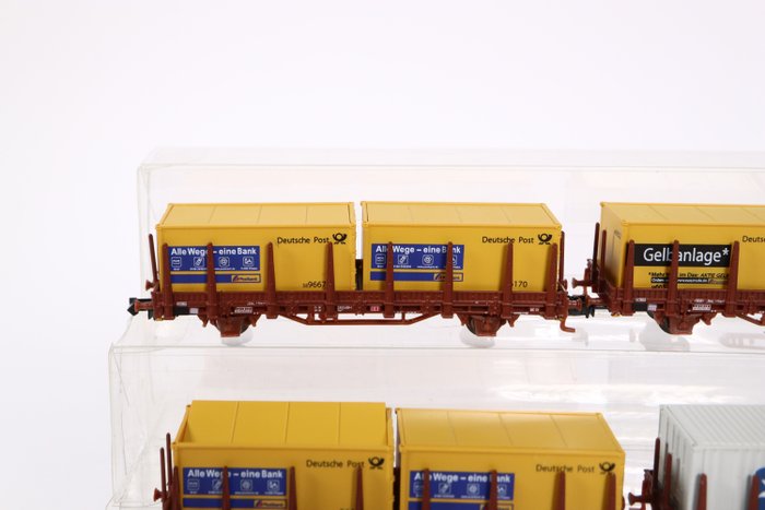 Zes goederenwagens met fraaie ladingen van de DB