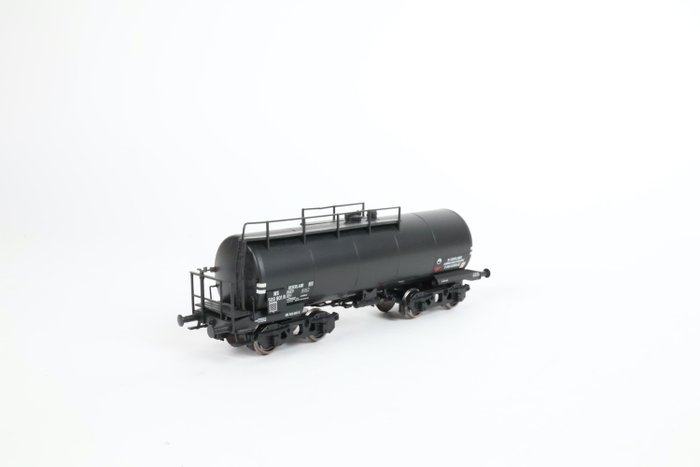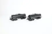 Twee identieke fijn gedetailleerde NAM ketelwagens. Het gaat om de verbeterde versie met zwart hekwerk. De wagens verkeren nog in zeer goede tot bijna nieuwstaat. Op exact dezelfde plek zit er een breukje in het het kleine hekwerk bovenop beide wagens.