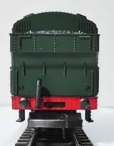 Het model is uitgevoerd in de na-oorlogse groene uitvoering met "GWR" op de tank. De loc heeft niet of nauwelijks gelopen - zie ook de conditie van de wielen op de foto - en verkeert in zeer goede staat. Hij is getest en werkend.De originele verpakking heeft een kleine beschadiging maar verkeert verder in goede gebruikte staat.