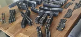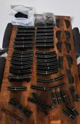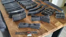 Het zakje met "rest" en de witte tas bevatten rails van overige merken en rails die naar mijn mening niet in hele goede staat meer zijn. Overigens wel nog te gebruiken.