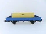 2x 2-assige lage boordwagens met lading (krat), blauw