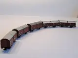 Uit set 00769 5 stuks schuifdakwagon, waarvan 1 met sluitlicht en sleper.