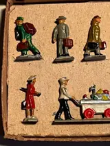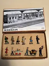 Set tinnen Märklin reizigers figuren, artikelnummer 0201. De set is in zeer goede conditie en zit in de originele verpakking.