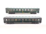 Geheel van twee stuks I3 rijtuigen van de Belgische Spoorwegen (NMBS/SNCB) in groene kleurstelling.