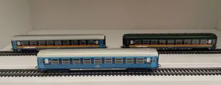 SNCB 4116 blauw 2 Kl, met interieur 1986 / 87 . 4118 Blauw2 Klmet regenboog strepenRailtour ,eninterieur 1985 / 88 . 4119Groen 2 Kl met regenboog strepenRailtour ,en interieur ,1986 /87 . 3 X wagons in super mooie conditie .Het product is in nieuwstaat zonder mankementen en heeft geen lakschade. Nauwelijks gereden, zie de asjes. Alles is recentelijk getest engesmeerd 100% werkend.