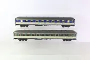 2 coupérijtuigen van de Deutsche Bundesbahn (DB). Standaardrijtuigen UIC-x in "Pop-kleuren".