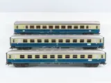 3 verschillende InterCity-rijtuigen van de Deutsche Bundesbahn (DB). 1 salonrijtuig Bpmz, 2e klas. 2 coupérijtuig Bm, 2e klas met verschillende bedrijfsnummers.