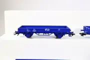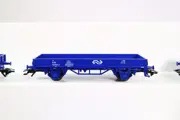 Elf Märklin 4433 blauwe lageboordwagens van de NS. Perfect geschikt om zelf een lading op te maken.