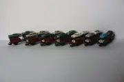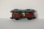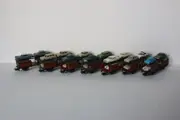 Een serie van 7 autotransportwagens elk met 4 auto's