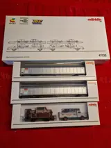 Dubbele autotransportwagen met 8 auto's(47123) Deze heeft een lichte schade aan het rek boven, zie de laatste foto's., de losse stukjes zitten in de doos.