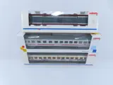 Märklin H0 - 4741/40502 - Passagiersrijtuig, Goederenwagon - 3-delige set met o.a. 8-assige platte wagen voor het vervoer van vrachtauto's - SBB-CFF