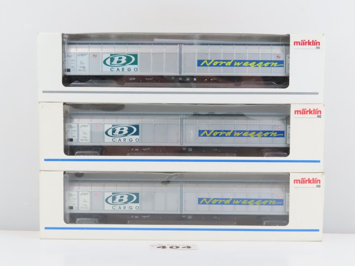Märklin H0 - 48032/48029 - Goederenwagon - 3x 4-assige schuifwandwagens met opdruk "Nordwaggon" - NMBS