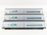 3x 4-assige schuifwandwagens met opdruk "Nordwaggon", zilver