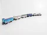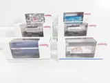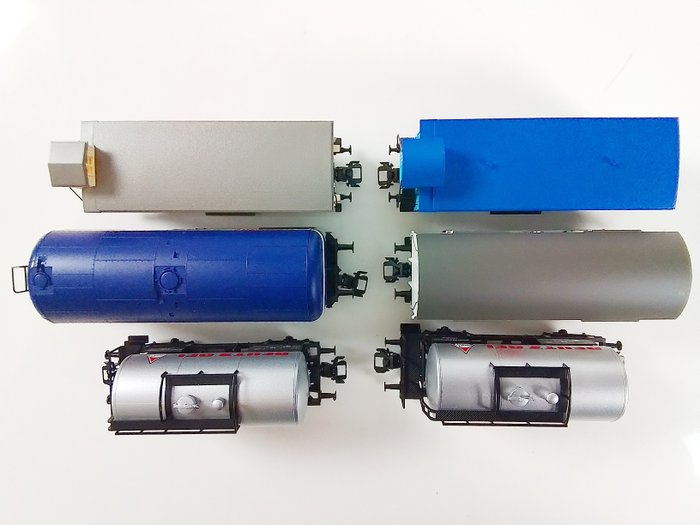 Wagons verkeren in nieuwstaat, geen (lak-)beschadigingen in onberispelijke ovp. Zie m.n. de volkomen blanke asjes en wielloopvlakken, vermoedelijk nooit op de baan geweest.