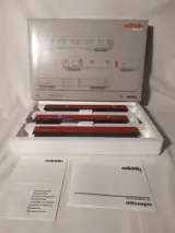 Mooie set van Märklin, artikelnummer 49953. Set van 3 rode DB wagons behorende bij de spoorkraan. De set biedt meerdere digitale functies, waaronder verlichting en diverse geluidsfuncties.