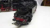 Beide locomotieven grotendeels compleet. Kleine pauzes op de tender. Sporen van spel, lakdefecten.
