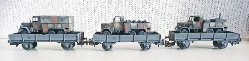 Spoorvervoer van 3 standaard diesels met dekzeil, vatentanksysteem en veldkeuken.