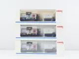 3x 2-assige ketelwagen met remmershuisje en opdruk "Gas Oel-Diesel", zilver. Model wordt geleverd met Mercedes pick-up, blauw