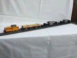 Leuke treinset met diesel rangeerlocomotief en 3 verschillende goederenwagens in goede staat