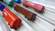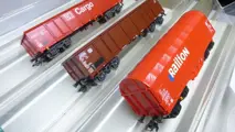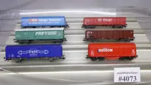 1 x huifkar (Roco) 2 x open goederenwagens 1 x schuifwandwagen 1 x klapdakwagen 1x gesloten goederenwagen