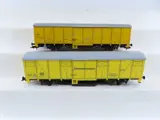 2x 2-assige gesloten goederenwagens, 1x met railreinigings-functie, geel