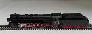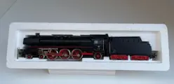 Zware loc van metaal ,met lampen stangen , Motor in cabine afgedekt .Tender 4 assen met handstangen en stangen kop( "stangekopfe") 2 X compleet . Loc en tender in super mooie conditie .Kunststof doos enige schade ,deksel binnen doos ,bruin verkleurd productie fout Marklin . Het product is in nieuwstaat zonder mankementen en heeft geen lakschade. Nauwelijks gereden, zie de asjes. Alles is recentelijk getest engesmeerd 100% werkend.