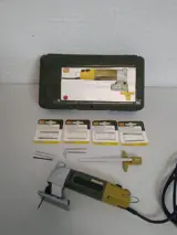 Decoupeerzaag. Preciesie gereedschap van Proxxon. Getest en werkend! Zie de foto's, deze geven een goed beeld en vormen dan ook onderdeel van de omschrijving. Met een aantal zagen (nieuwstaat in de doos).