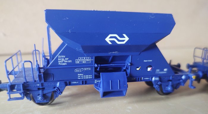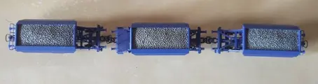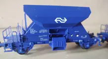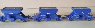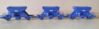 Drie NS grindwagens voorzien van kortkoppeling NEM schacht.