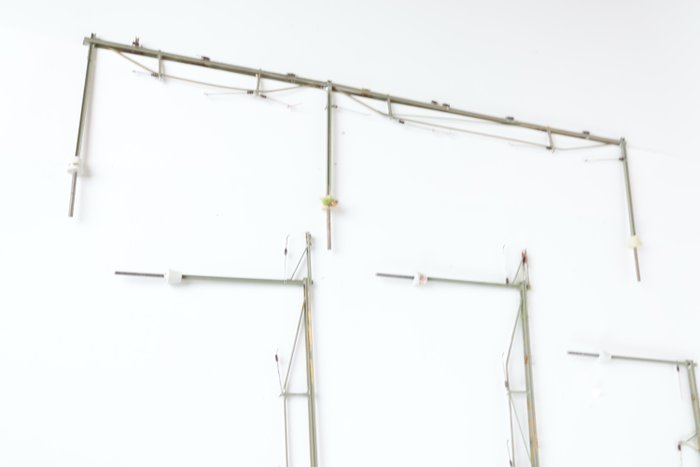 Door de vorige eigenaar omgebouwd voor gebruik voor 3-5 sporen. Een aantal voetstukken zijn korter omdat deze op een perron of overkapping waren bevestigd.