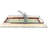 H0 - Landschap - Portaalkraan gemotoriseerd met afstandsbediening op rails over een droogdok.