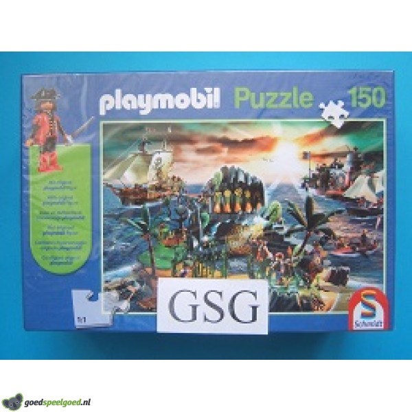 Puzzel van 150 stukjes met speelfiguur met als thema pirateneiland van het merk Schmidt. Is nog helemaal nieuw.