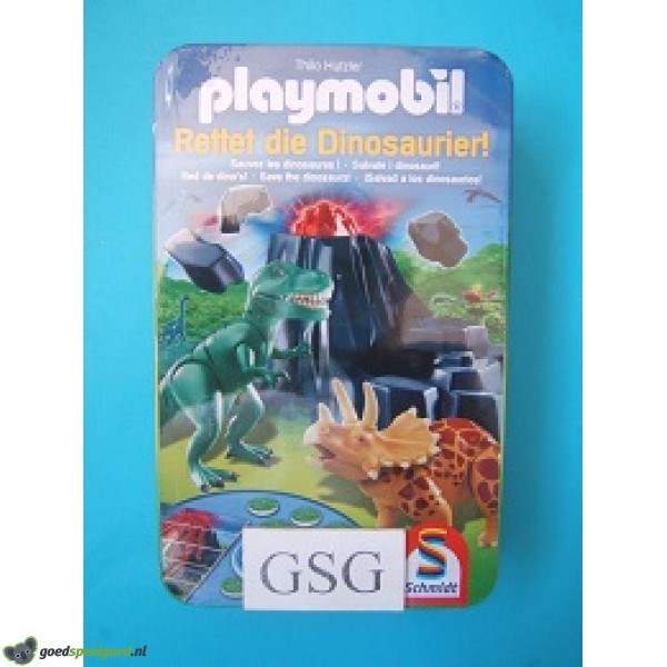 Help! De vulkaan staat op uitbarsten. Nu moet je alle dinosaurussen snel in veiligheid brengen. De speler wie als eerst de meeste dino's heeft gered wint het spel! Spel zit in ene luxe blik maar in het blik zit aan de achterzijde een deuk. Kompleet met handleiding. Geschikt voor 2-5 spelers in de leeftijd vanaf 4 jaar. Zit nog in de ongeopende originele verpakking.