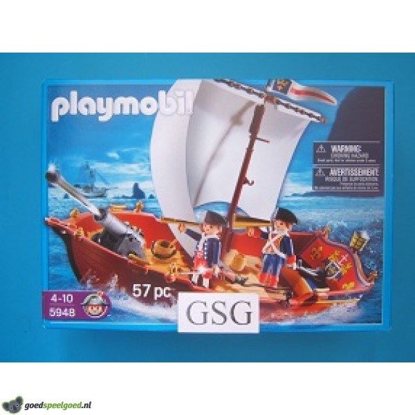 Deze 2 Playmobil soldaten hebben zelf ook een boot waarmee ze tegen de piraten vechten! Dit schip heeft een kanon dat kan schieten en kan bovendien in echt water drijven. Is geschikt voor de leeftijd van 4-10 jaar. Zit nog in de ongeopende originele verpakking.